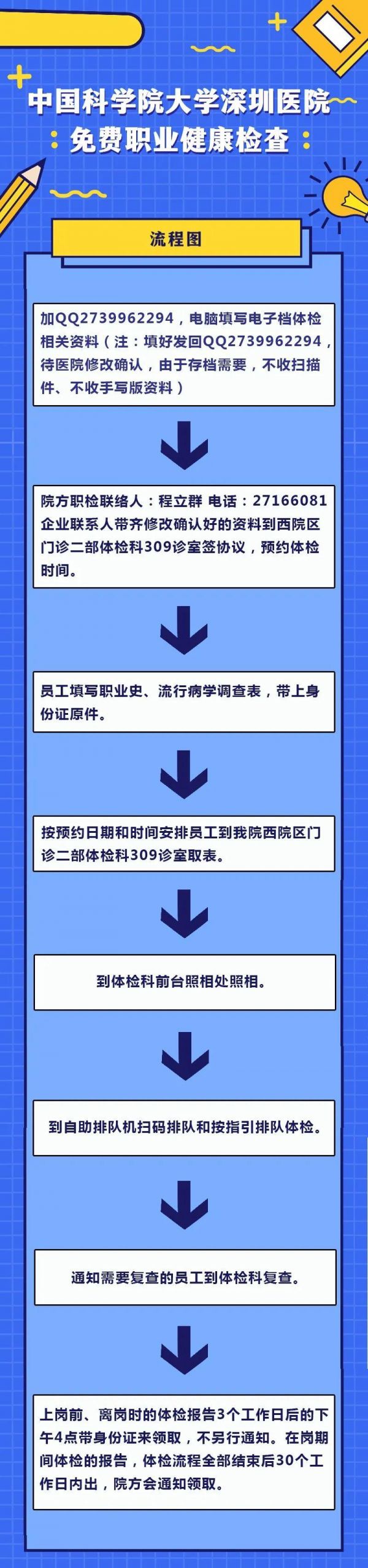 职业健康检查为免费项目,详细流程请查看图片