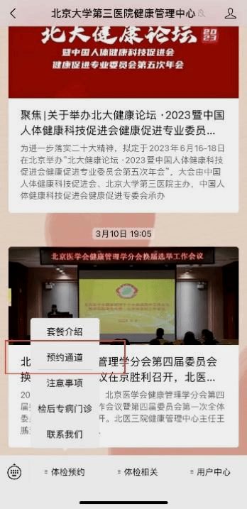 2.预约方式:获取预约码后,通过“北京大学第三医院健康管理中心微信公众号”进行预约。