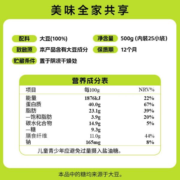 只有大豆单一配料,冲泡后能喝到细腻的豆渣口感,喜欢浓郁挂的可以少加水,做成豆乳酱抹面包也超赞。
