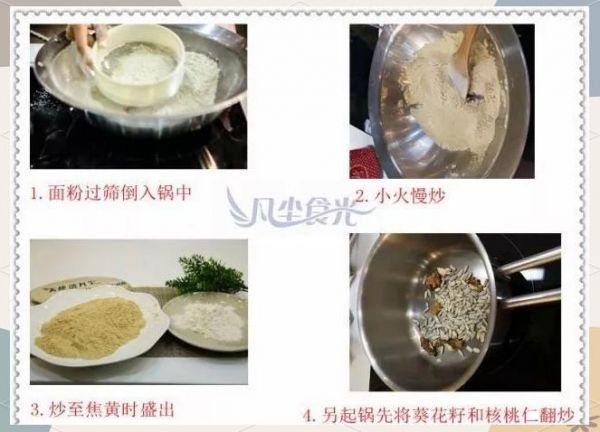 制作更健康的油茶面,我们使用多种杂粮和坚果, 提供了丰富的营养。其中包含面粉200克、筱面粉50克、小米粉30克、葵花籽20克、黑芝麻20克、核桃仁10克、白砂糖20克、猪油20克、花生油20克。