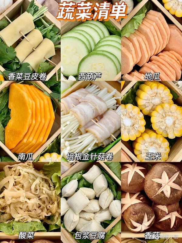 金针菇、土豆、地瓜、口蘑、玉米、包浆豆腐、豆皮卷、金针菇/香菜/油麦菜。