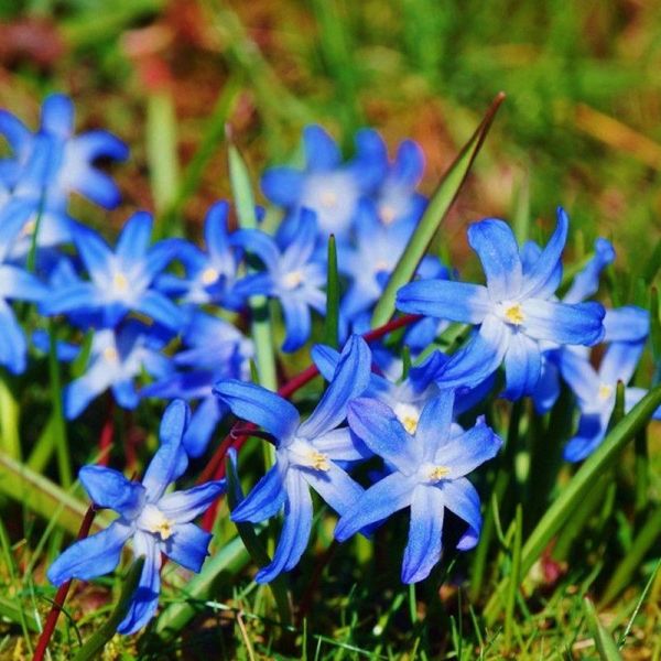 视觉疗愈:蓝铃花的钟形花朵像一串迷你风铃,雪光花的星状花瓣则像落在绿叶上的雪花