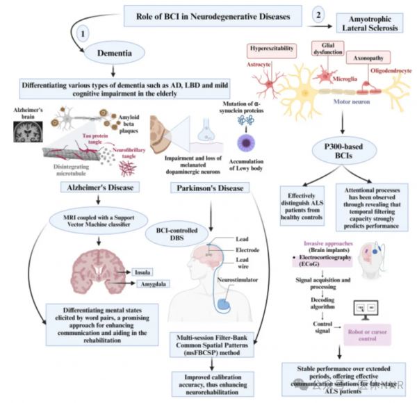 图2概述了BCI技术在神经退行性疾病背景下的应用。