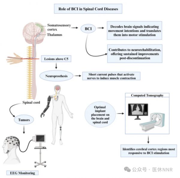 图5.脑机接口(BCI)在嵴髓疾病管理中的作用示意图。