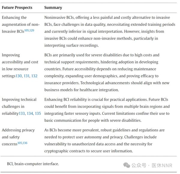 表3概述了BCI遇到的各种挑战,从可能影响性能和用户体验的技术和可用性问题,到将负责任的BCI整合到医疗保健中至关重要的伦理和安全考虑。