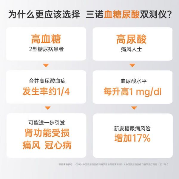 现代人常见的代谢问题往往相互关联,高血糖与高尿酸常"结伴而行"。传统单一功能的检测设备需要购买两台仪器,不仅占用空间,使用起来也颇为不便。