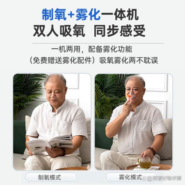 3、多功能便捷:这款制氧机不仅可以供氧,还可以接入呼吸机使用,实现一机三用。还有雾化功能,可以同时使用吸氧和雾化,方便又实用。而且,它还有双层湿化杯,可以长时间滋润,保证氧气纯净。更重要的是,操作简单,一键制氧,让您轻松享受健康生活。