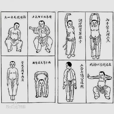 除了靠节食和喝茶,我们古人也意识到了适度运动在减肥中的作用。古人发明了很多运动的法门,类似今天的广播体操。其中著名的有八段锦和五禽戏。八段锦最早见于南宋的《夷坚乙志》。后来经过发展,演变除了坐式、立式、十二段锦、十六段锦等。而五禽戏据说是华佗发明的。这两种运动深受我国人民的喜爱,长期坚持确有健身甚至治病的功效,当然也有一定减肥的作用。