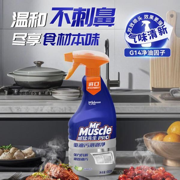 功能介绍:G14净油因子的强效配方,搭配绵密泡沫质地,喷在油烟机滤网、机身的重油污上会牢牢附着不会流淌,能快速渗透油垢。亮点: