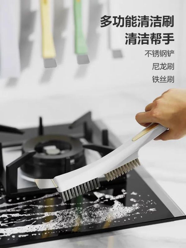 全能清洁:铜丝刷头去锈、尼龙刷头除油污,加长手柄远离脏水,厨房死角一网打尽。
