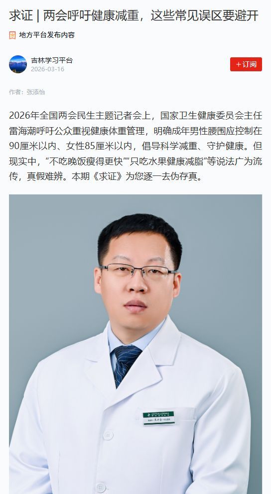 【媒体报道】学习强国、吉林日报:两会呼吁健康减重,这些常见误区要避开