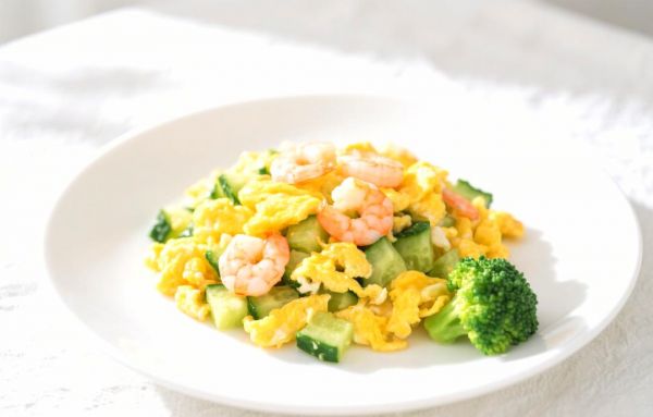 虾仁用料酒腌10分钟,黄瓜切丁,先炒鸡蛋盛起;再用余油爆香虾仁,加黄瓜丁1分钟断生,回锅鸡蛋,三色高颜值且蛋白质满满,适合主菜登场。