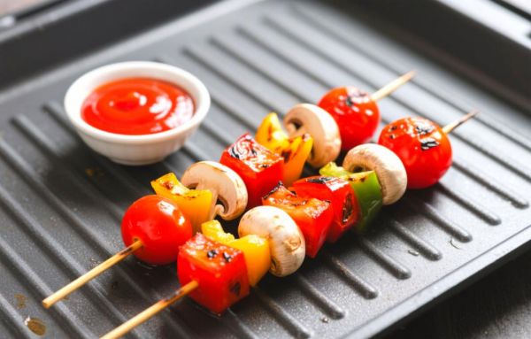 番茄对半切,与口蘑、彩椒串成串,刷橄榄油撒黑胡椒、盐,180℃烤15分钟。番茄爆汁、菌菇提鲜,减脂期也能大口烟火气。