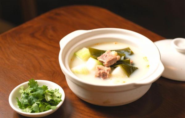 排骨先焯水去血沫,加姜片炖40分钟,再入冬瓜、海带续煮20分钟。海带补碘、冬瓜吸味,汤鲜味美却不油腻,减脂期也能喝出幸福感。