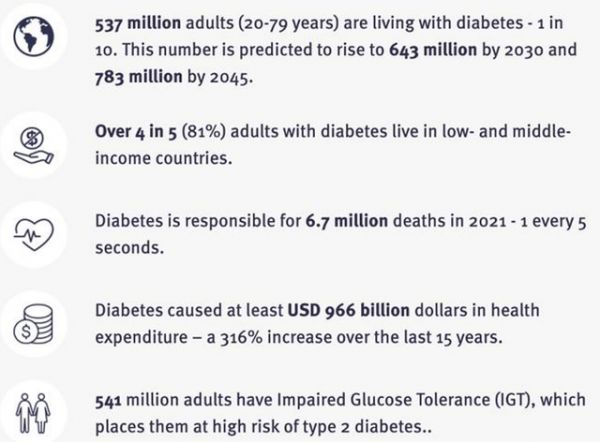 以血糖研究为例,这是影响人身体健康的重要指标之一,最为熟知与其相关的病症就是糖尿病。数据显示,2021年全球成年糖尿病患者人数达到5.37亿,折合全球每10个成年人中就有一个患有糖尿病(数据来源:2021年12月6日国际糖尿病联盟(IDF)发布的《全球糖尿病地图(第10版)》)。