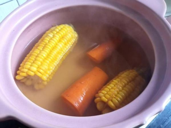 把玉米盒胡萝卜一起放入砂锅中,煮熟即可,十分的简单。