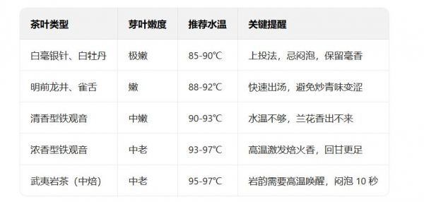 你的泡茶水温真的正确吗?不同嫩度茶叶所需水温的详细参照表在此