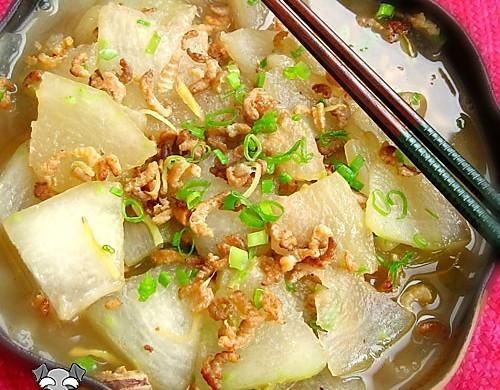 原料:冬瓜500克、海米30克、姜丝和葱末适量。