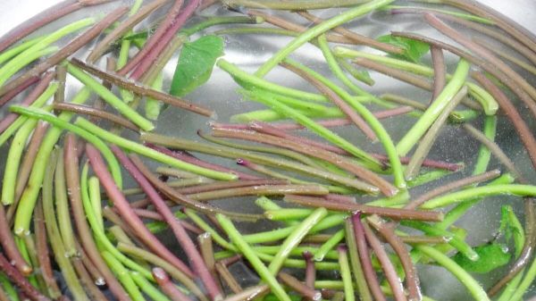 2、透过汆[cuān]烫或烹调加热