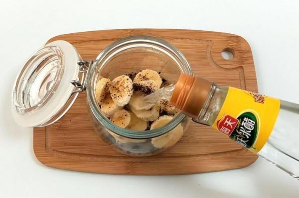 将切好的香蕉片加入罐子中,盖上密封盖,让其在密封状态下静置24小时。待时间一到,便可享用。