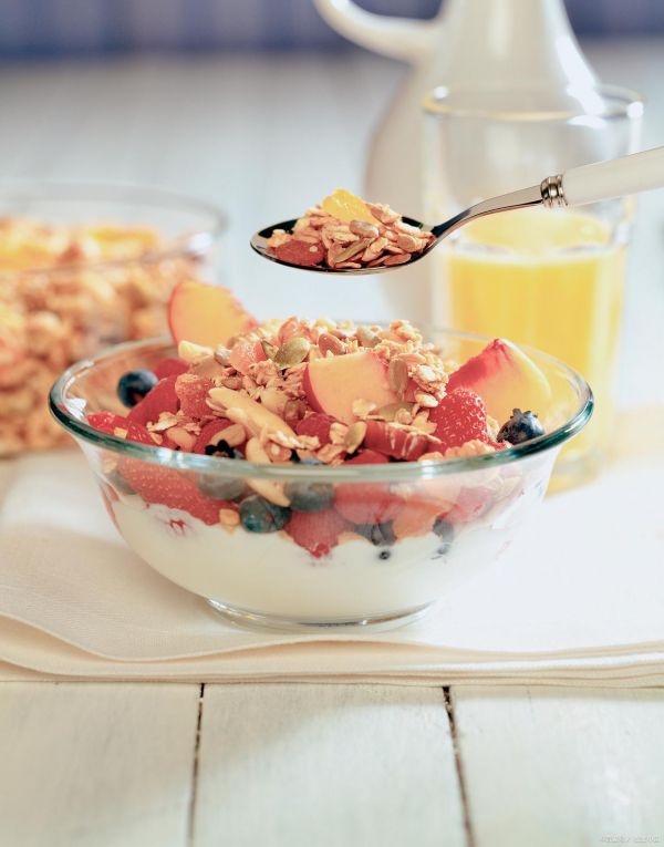 3. 淋上酸奶或低脂沙拉酱,撒上坚果碎,清爽酸甜,一口解锁轻盈口感。