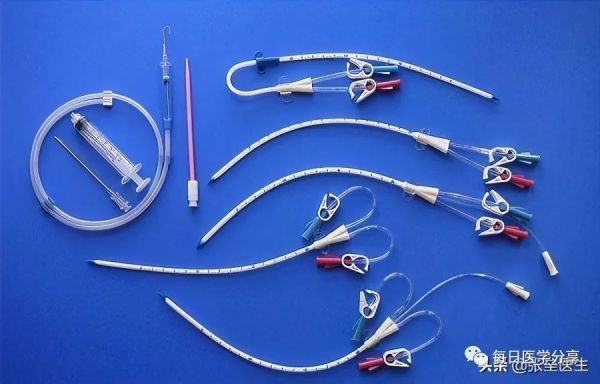 其实标题中所说的“管子”在临床上我们称之为“中心静脉留置双腔导管”,这是目前最为常用的急性血管通路。有人想,为什么不能像打针输液一样在手背上打一针就行呢?因为透析必须要一定的血流量,所以表浅的静脉的血流量是必然达不到要求的。我们一定要选择较大的“中心静脉”,那么最为常用的就是“颈内静脉、股静脉、锁骨下静脉”了,所以透析既可以选择在脖子这边将导管置入颈内静脉,也可以选择在大腿根部将导管置入股静脉。这二者之间随便选择哪个部位,有的医生习惯插颈内静脉,有的医生习惯插股静脉,但是颈内静脉置管风险系数要比股静脉置管更高,虽然在置管前普遍都会使用B超定位。如果是临时置管,个人还是比较喜欢从“股静脉”将透析导管置入。