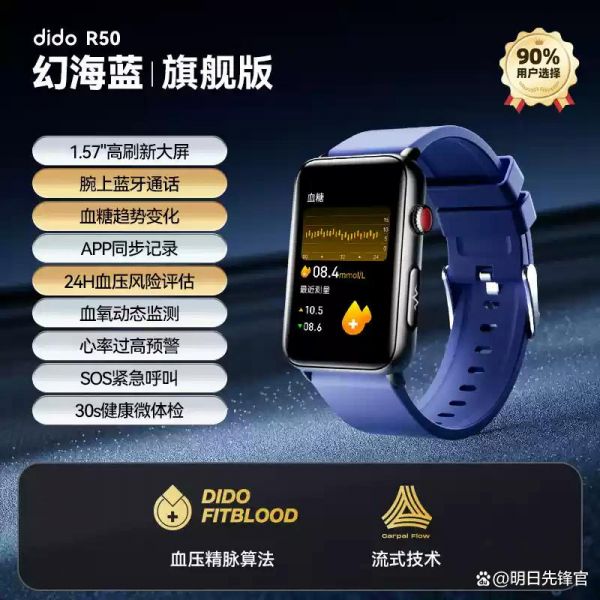 重点来了!dido R50血糖手表,就是这样一款高端智能穿戴设备,宣称能够通过佩戴手腕来实现血糖的动态趋势评估,从而在一定程度上替代传统血糖仪的监测功能。这样的一款手表能否真的代替传统血糖仪呢?它是否能够准确评估我们的血糖状况,帮助我们更好地管理健康?今天,我们就来深入探讨这些问题,看看dido R50血糖手表到底表现如何。