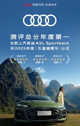 近日,中國汽車工程研究院正式發佈2025年度C-AHI中國汽車健康指數測評結果。全新上汽奧迪A5L Sportback憑藉全維度卓越表現,榮獲“五星健康車”稱號,並以總分第一的成績登頂年度榜單。這不僅展現了其在健康座艙領域的領先實力,更體現了上汽奧迪以創新科技引領行業健康出行的品牌承諾。