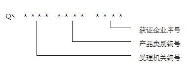 第三十三条 食品生产许可证采用英文字母QS加12位阿拉伯数字编号方法。QS为英文QualitySafety的缩写,编号前4位为受理机关编号,中间4位为产品类别编号,后4位为企业序号。凡取得生产许可证的产品,企业必须在产品的包装和标签上标注生产许可证编号。