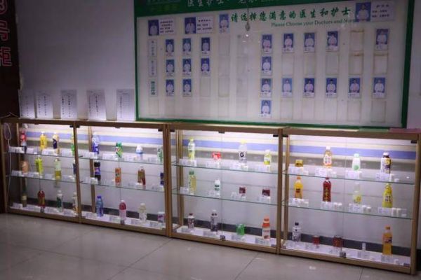 含糖量可视化展示柜位于肝病科入口位置,展示柜内整齐陈列着六十余种常见饮料。从果汁饮品到碳酸饮料、从功能型饮料到咖啡、从茶饮到乳酸菌类,涵盖了众多深受大众喜爱的饮料品种。在每种饮料旁都放置了盛有对应含糖量(白砂糖)的小杯子。这些白砂糖经过精心计算,确保与饮料中的碳水化合物含量相当,从而实现了饮料含糖量的直观展示。