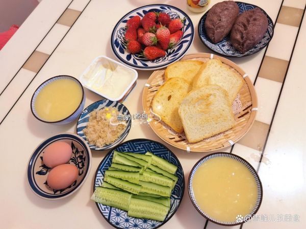 这个早餐对于清晨是非常棒的,粗粮菜包,面包,奶酪,肉松,玉米糊,煮蛋,黄瓜片,水果是草莓。这一餐可以说中西餐互相搭配,有着非常丰富的营养,低脂低热量,不管是老人孩子孩子可以各取所需。
