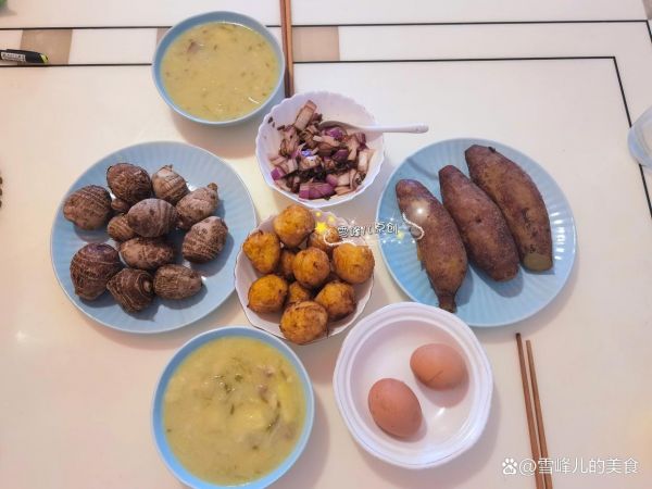 这一餐主要以粗粮为主,用萝卜丝和花生做成的粥,搭配蒸芋头,蒸地瓜,炸肉丸,拌洋葱,虽说不好看,但是对于营养的搭配还是很不错的,低脂低热量,蛋白质也不低,是多吃不长胖的一餐。