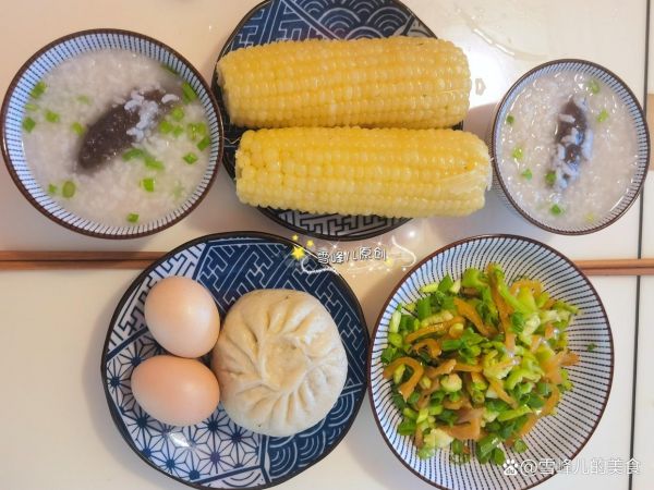 这一餐也是采取了粗细搭配的原则,蒸制的玉米属于粗粮,煮蛋,拌小菜,海参粥,看似简单,其实营养非常好,也是低脂低热量的一餐,能补充营养还不长胖。