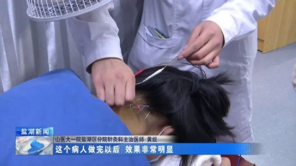 山医大一院盐湖区分院针灸科主治医师 黄妮这个病人做完以后,效果非常明显,基本上就是疼痛程度能够消除50%以上。她做了颈椎核磁以后,显示她 那个上颈段有个小突出,所以我们采用这个颈椎牵引,可以改善它的血液循环,还可以起到一个活血化瘀,疏经通络的作用。