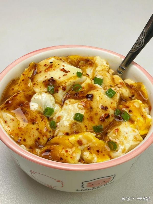 豆腐吸满了酱汁,又嫩又入味,鸡蛋滑嫩鲜美,微辣的口感,非常开胃。