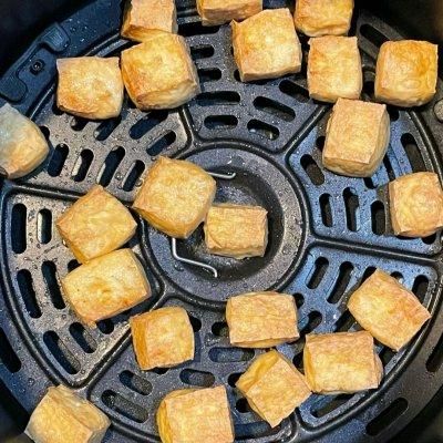 小tips:如果豆腐切大块的,烤得时间要久点;豆腐表面微微发黄就可以吃了,这时候吃比较嫩,如果要脆点,就要烤久点~没有空气炸锅的可以用烤箱试试,但是效果可能不太好,真的推荐空气炸锅,健康