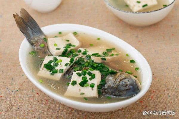 食材准备:鲫鱼 1条(约500克)、老母鸡半只(可选,增加汤的鲜味)、嫩豆腐 1块、姜片 3-4片、料酒 1汤匙、食盐 适量、白胡椒粉 适量、青葱 适量、枸杞(可选)适量、红枣(可选)适量、清水 适量