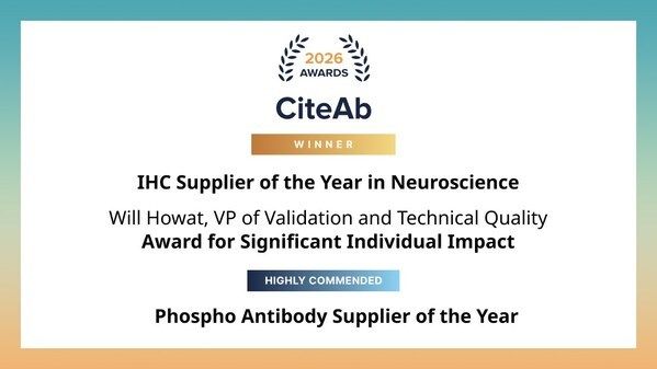丹纳赫(Danaher)旗下公司、全球知名的生命科学试剂与工具供应商Abcam3月17日宣布,公司验证与技术质量副总裁Will Howat 博士荣获CiteAb 2026年度"卓越个人影响力奖"。同时,Abcam 还被评选为"神经科学领域 IHC 年度供应商"并在"磷酸化抗体年度供应商奖"中获得高度评价。截至目前,Abcam 已连续十二年获得 CiteAb 奖项认可。