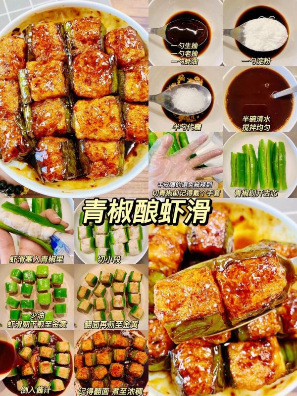 想要来点创意十足的减脂餐?那就试试这道青椒酿虾滑吧!将青椒划开去芯,记得戴手套哦,以免被辣到。将虾滑塞入青椒里,切小段后用少油将虾滑朝下煎至金黄,再翻面煎至金黄。倒入用一勺淀粉、半碗清水、两勺生抽、一勺老抽、一勺料酒和半勺椒盐调成的酱汁,煮至浓稠即可。这道菜创意十足,低脂又美味,绝对能让你在减脂期也能享受美食的乐趣。
