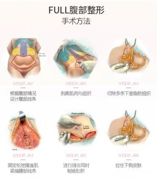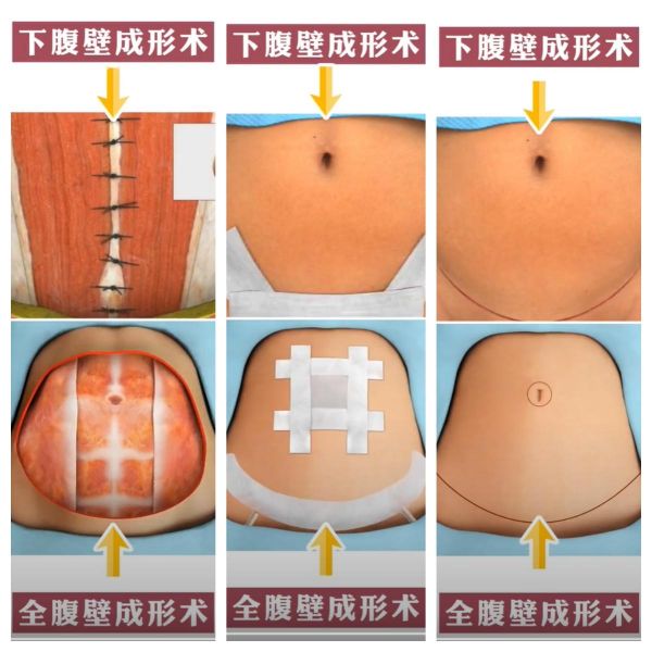 1.全腹壁整形术:通过去除松弛的腹部皮肤组织,使用内窥镜分离和紧缩腹直肌,调整腰部曲线,并精心缝合皮肤,让手术疤痕隐藏在内裤线下。
