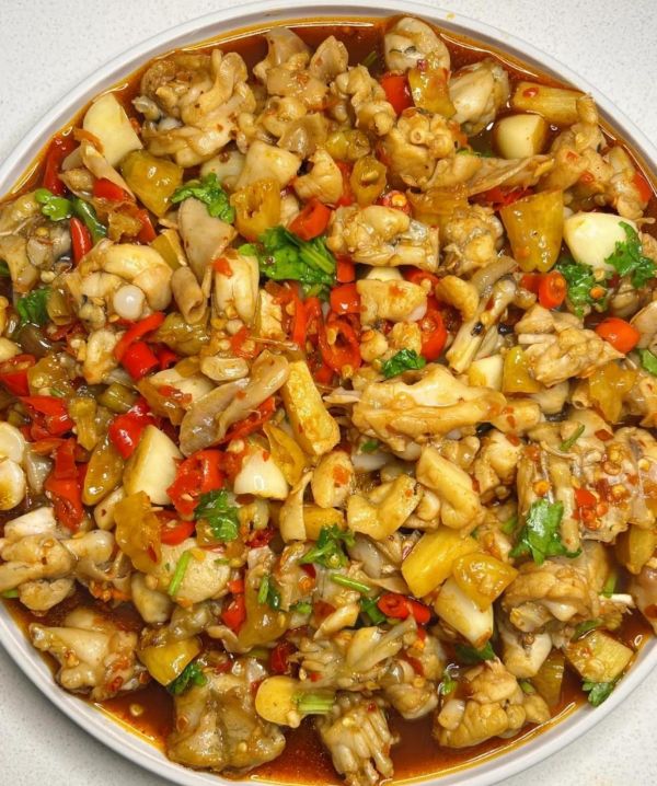 3. 最后泼热油时撒上现焙的辣椒碎,滋啦一声香气四溢
