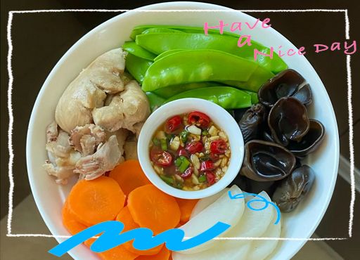 煮鸡胸肉和各类蔬菜组成美味组合。