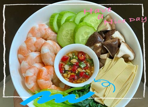 水煮虾搭配油菜、黄瓜等,清新爽口。