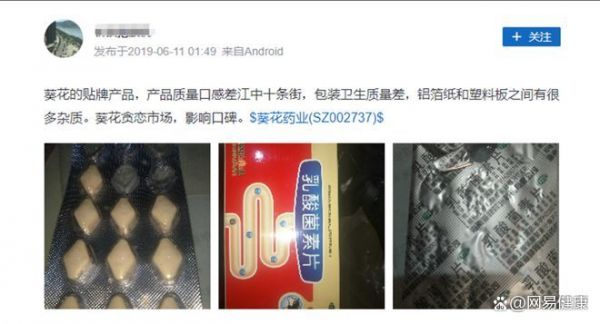 此外,也有消费者反映,葵花药业的某款贴牌产品,其生产包装卫生质量差,铝箔纸和塑料板之间有很多杂质。