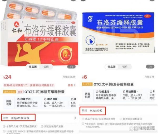 由此我们可以窥探一二,贴牌可以迅速达到规模经济效益,且利润又很高。比如在叮当快药上,一款同为福建太平洋制药有限公司生产的布洛芬缓释胶囊,仁和卖到24元(0.3g*22粒),而太平集团仅卖12元(0.3g*20粒)。贴上仁和的标后,身价瞬间涨了一倍。