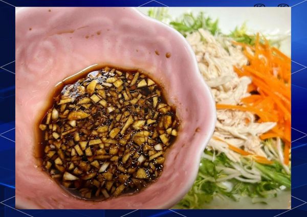 蒜末+盐+鸡精+2勺生抽+1勺香醋+半勺香油,爱吃辣再淋半勺辣椒油,搅拌均匀即可。酱汁不过度调味,才能让蔬菜本味脱颖而出。