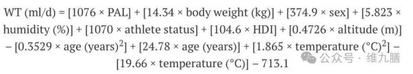 研究者收集了来自全国23个国家、具有不同的生活环境和条件、年龄从8天-96岁不等的5604名受试者,推翻了“一天两升水”的说法,每天的推荐饮水量还是因人而异,公式如下:
