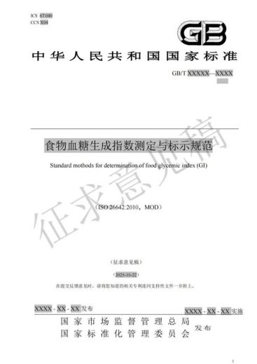 低GI迎来国标,《食物血糖生成指数测定与标示规范》公开征求意见