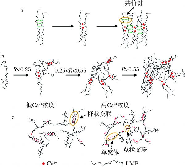 Ca2+的结合;c-LMP-钙凝胶网络在不同Ca2+浓度下的纳米结构