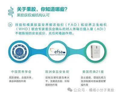 小分子果胶被世界卫生组织(WHO)认定为安全成分,广泛应用于食品和保健品领域,安全性得到国际认可。
